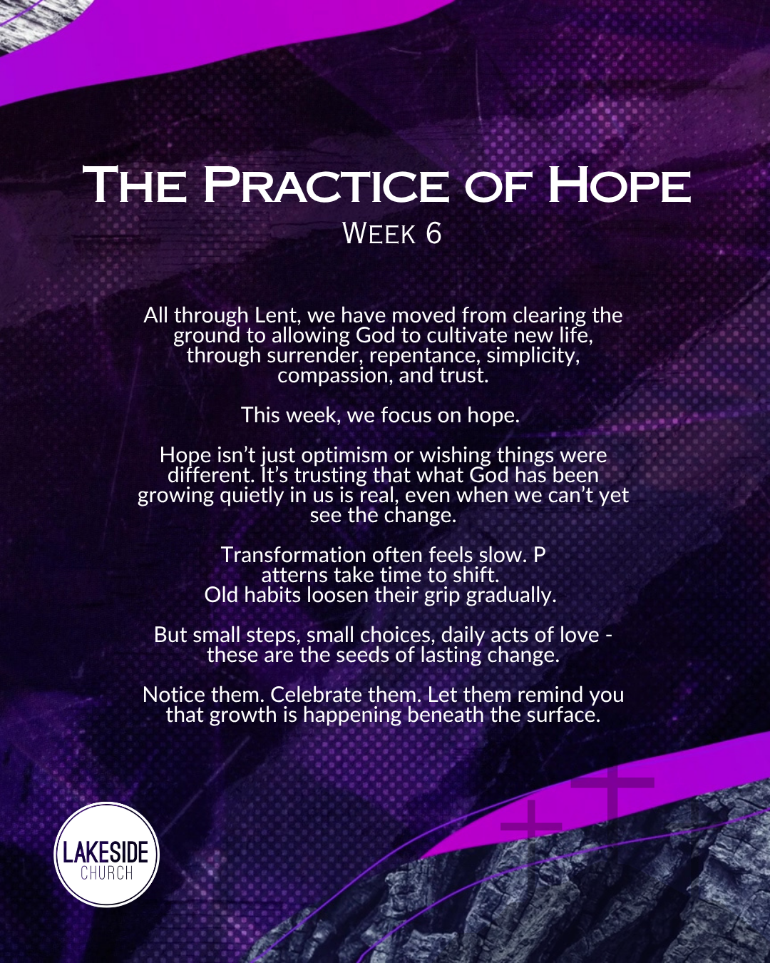 As we enter the season of Lent, we want to focus not just on what we are leaving behind, but on what (and who) we are becoming. Each week you're invited into a simple spiritual practice - small, steady steps that make space for the Spirit to reshape us from the inside out.